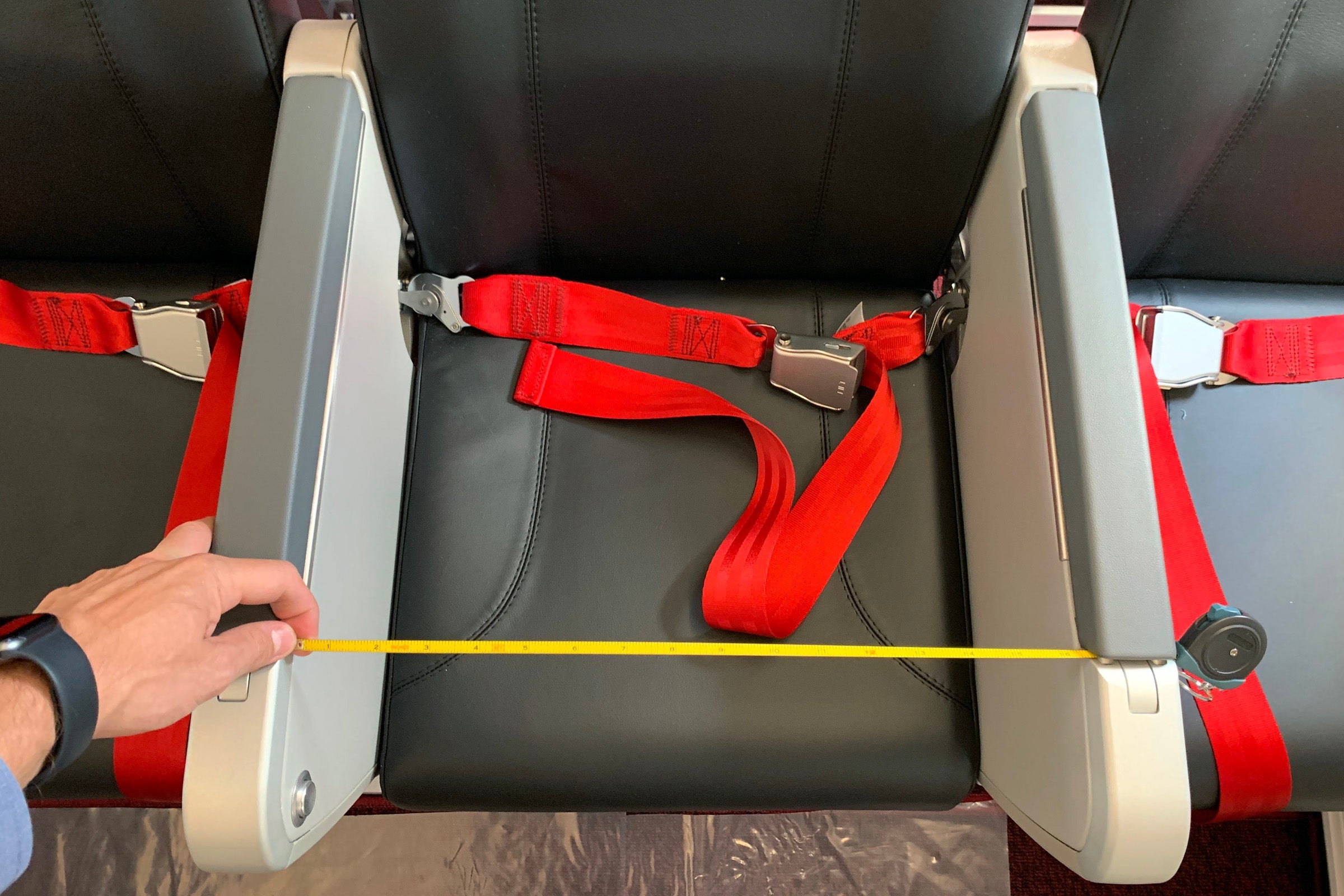 Some bulkhead seats are even worse, at just 16 inches, due to the fixed armrest.