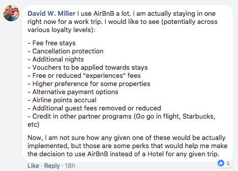 Although not everything will be included, David Miller listed a slew of requests like credit in partner programs and reduced fees — and if some of them were implemented it would push him to choose an Airbnb over a hotel.