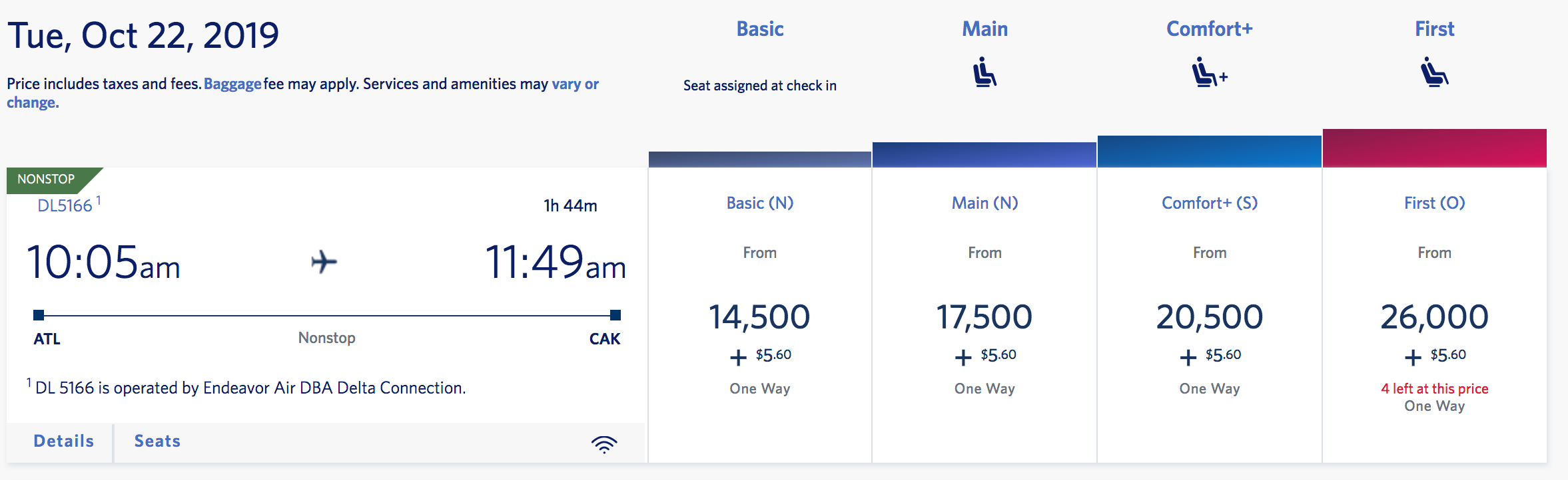 For instance, if you're coming in from Atlanta on Oct. 22, a one-way flight will only set you back 14,500 points plus taxes in basic economy on Delta. A MileSAAver award on American from Chicago to Akron will run you just 7,500 miles, and 10,000 miles on United from Newark, but be mindful of the close-in booking fees for both carriers, which I encountered during a test search.