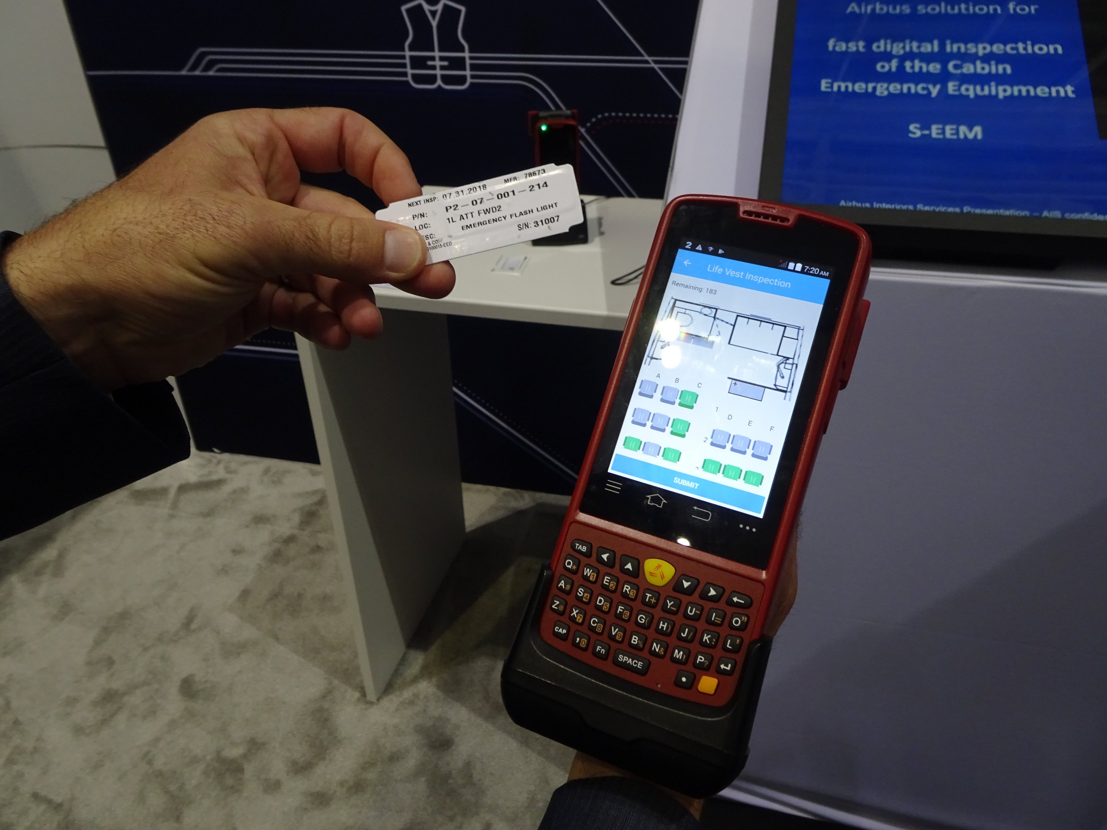 Safety checks have been streamlined, too. Alongside Fujitsu, Airbus recently introduced a scanner that reads an RFID chip attached to different aircraft safety items like oxygen tanks and life vests. Crew and maintenance workers only have to go up and down the aisles and point the scanner gun at the seats, which can collect all the data they need on an A350's business-class cabin in just 15 seconds, an Airbus rep explained.