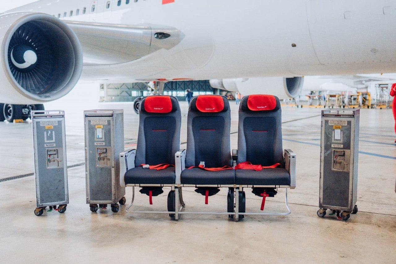 Austrian Airlines has put some economy class seats and cabin trolleys up for auction. The seats became available when the airline expanded its premium economy section on three Boeing 767s; to do so, the airline removed about 10 economy seats and two business class seats from each aircraft.
