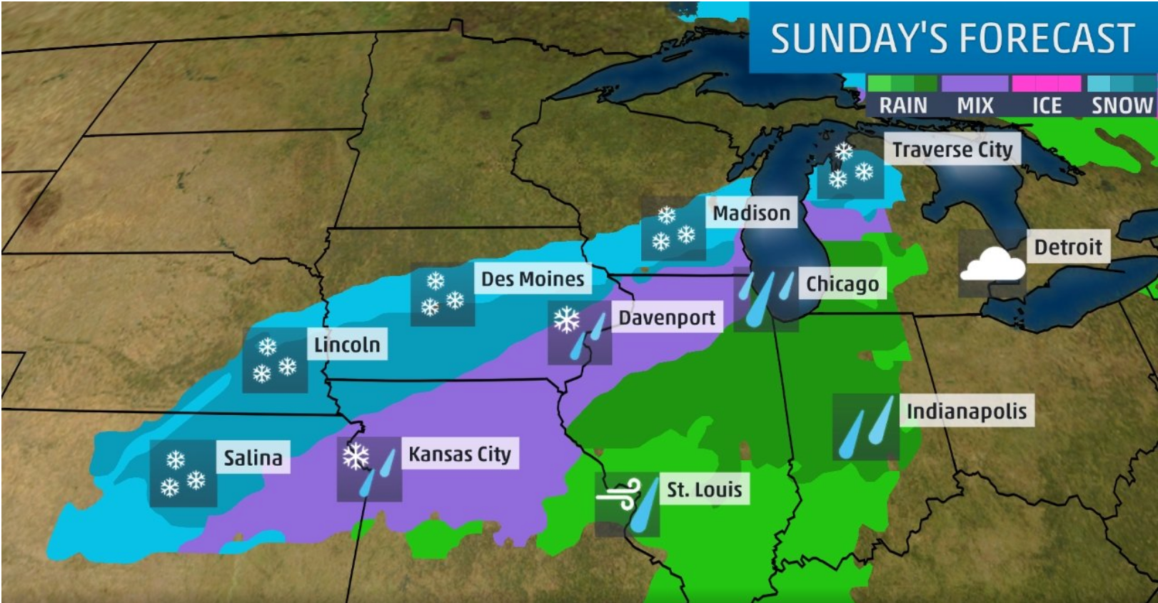 Airports that will prove especially problematic are bolded above. Among some of these more problematic airports are Chicago's O'Hare (ORD) and Midway (MDW) as winter weather is expected to move into the Chicago area by Sunday morning. Major hubs for airlines including American, Southwest, and United, these Chicago airports carry many passengers traveling to or from Midwestern cities.