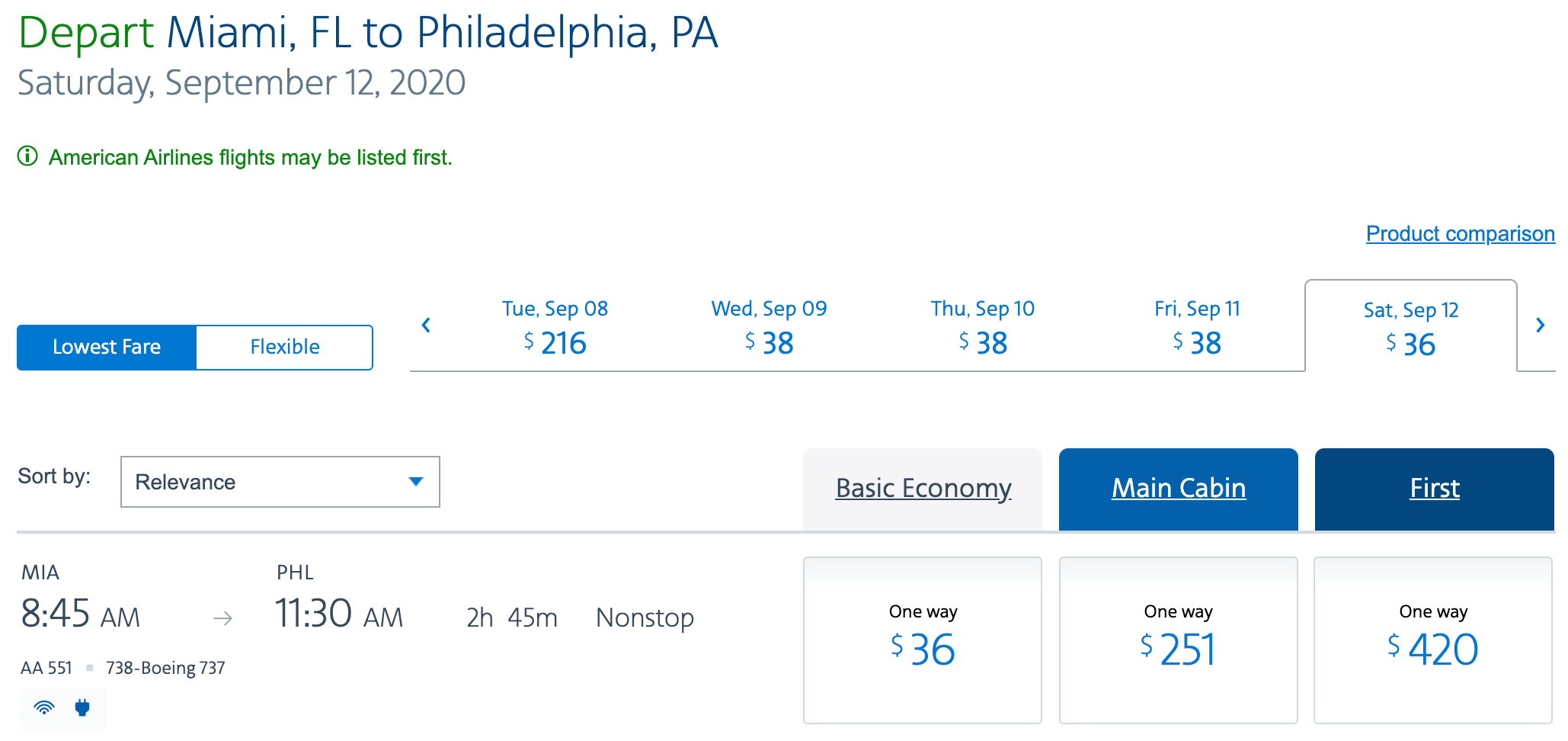 Flexibility just became a perk of all "standard" economy tickets, which can cost anywhere from $15 to hundreds of dollars more than a basic economy ticket, each way. Take this Miami (MIA)-Philadelphia (PHL) trip below. You can book seven basic economy tickets for the price of a single regular economy seat.