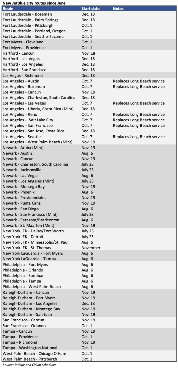 Related: JetBlue continues push beyond focus cities, challenges Delta, United with 24 new routes