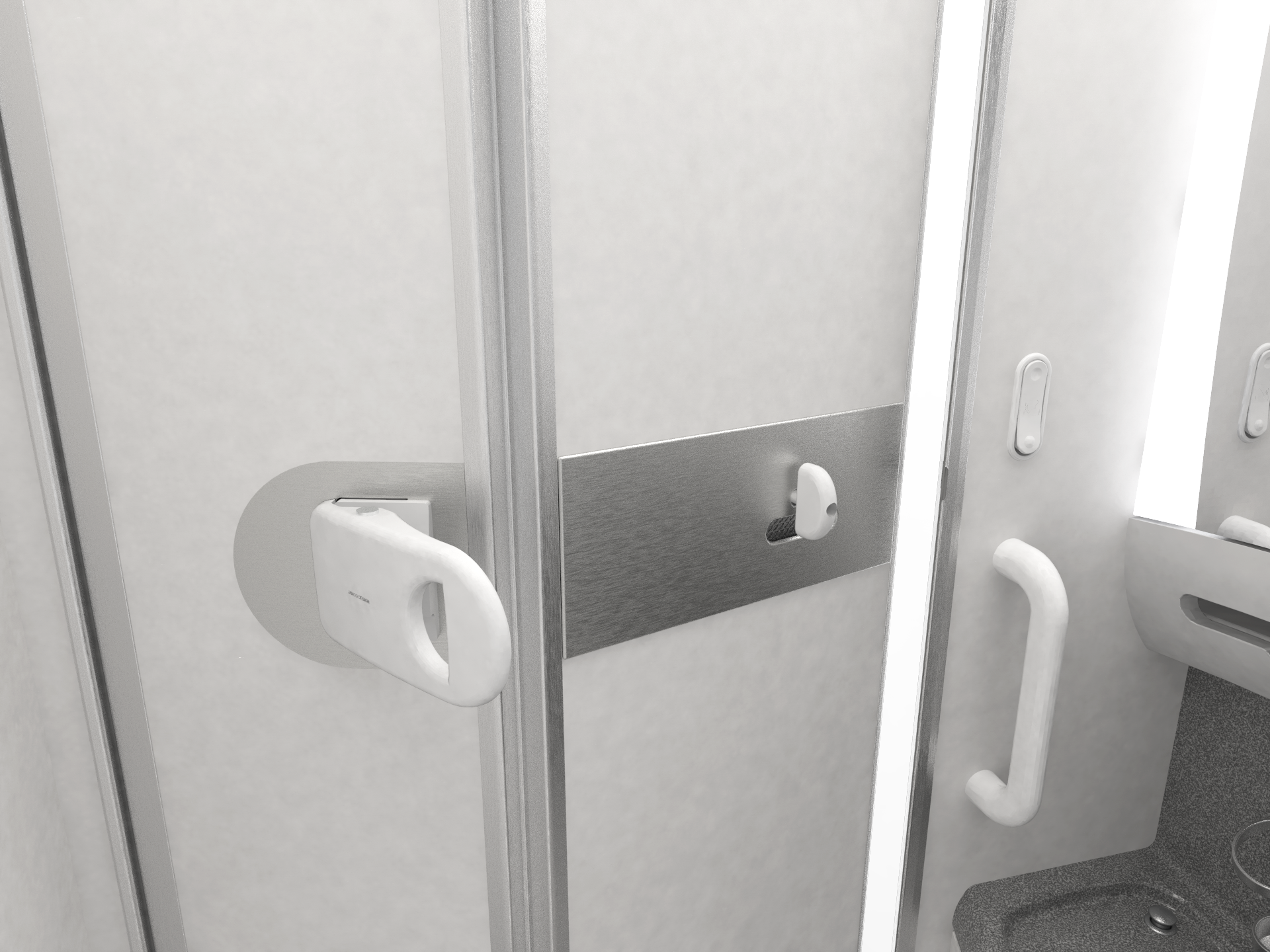 ANA recently introduced a new method of entering the airplane lavatory in mid-June. Instead of sliding a doorknob with your hand, the new concept features a lever that allows you to open the door with your elbow.
