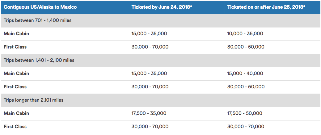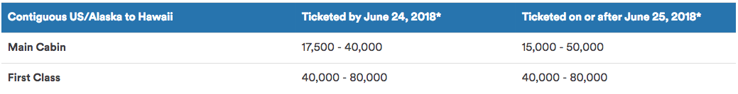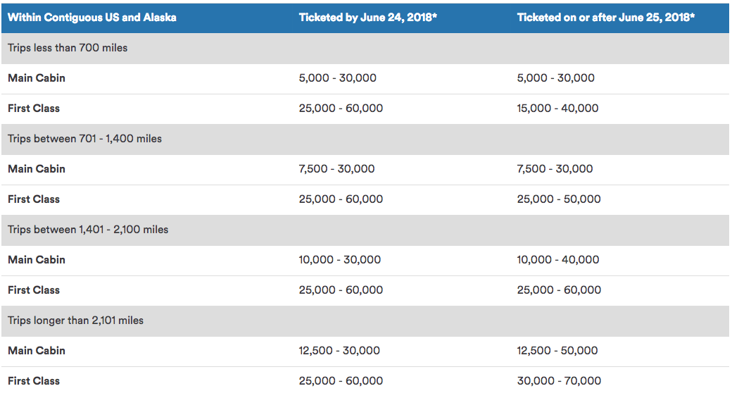 For flights within the contiguous US and Alaska, pricing for first-class awards is lowering from 25,000-60,000 miles to 15,000-40,000 on flights that are 700 miles or less. Economy awards are staying the same.