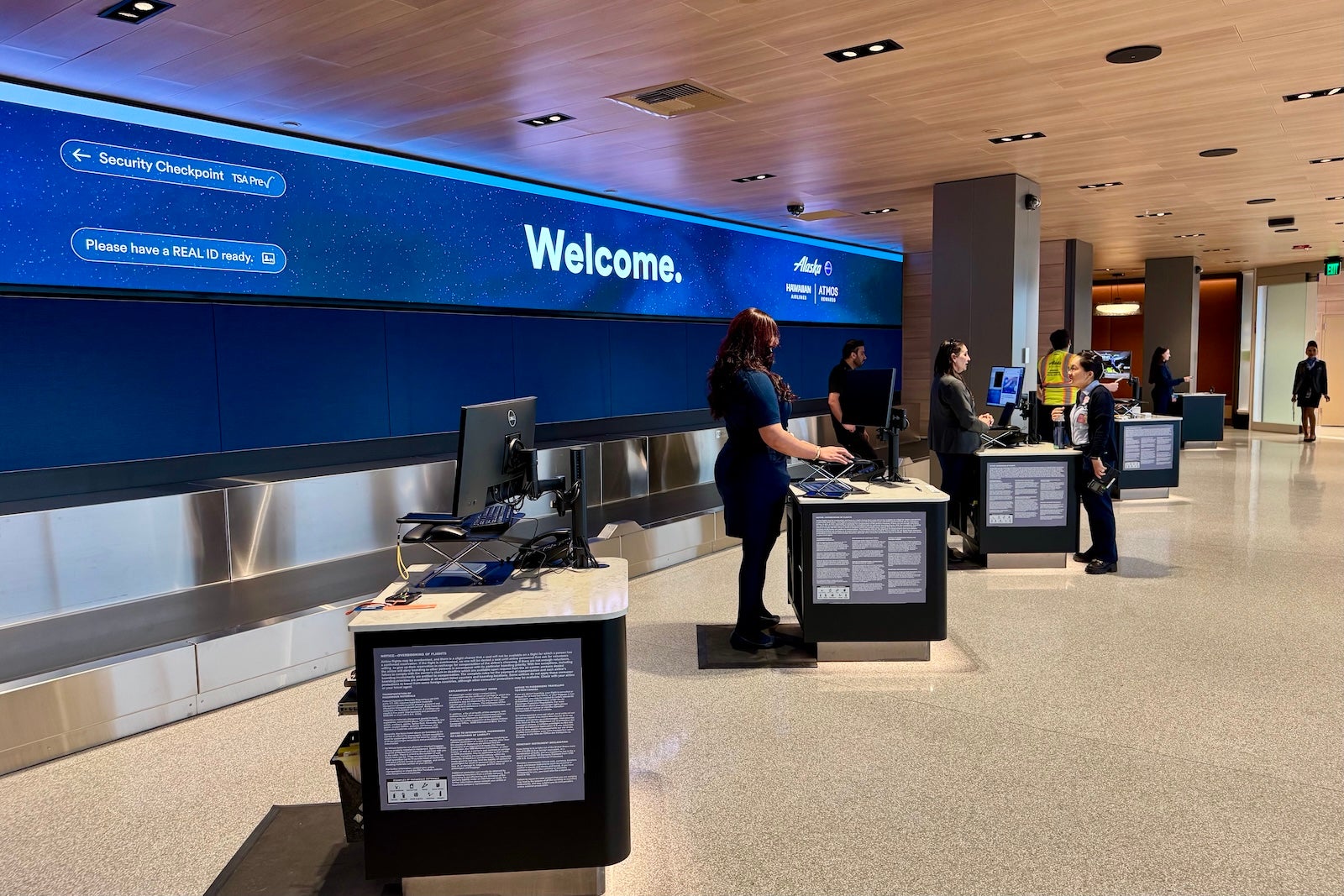 Alaska on Monday cut the proverbial wrapper off a fancy new check-in lounge at SeaTac that's available to anyone flying in a lie-flat seat on Alaska or Hawaiian — or to members who reach top-tier Titanium status in the airlines' shared Atmos Rewards loyalty program (Remember: Alaska and Hawaiian do continue to operate as two separate brands.)