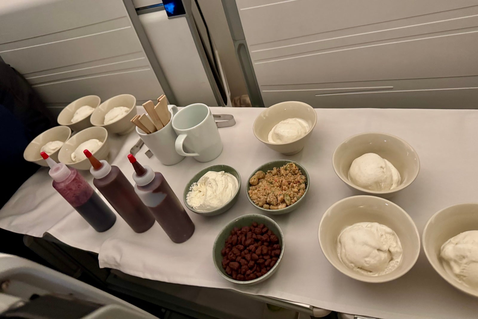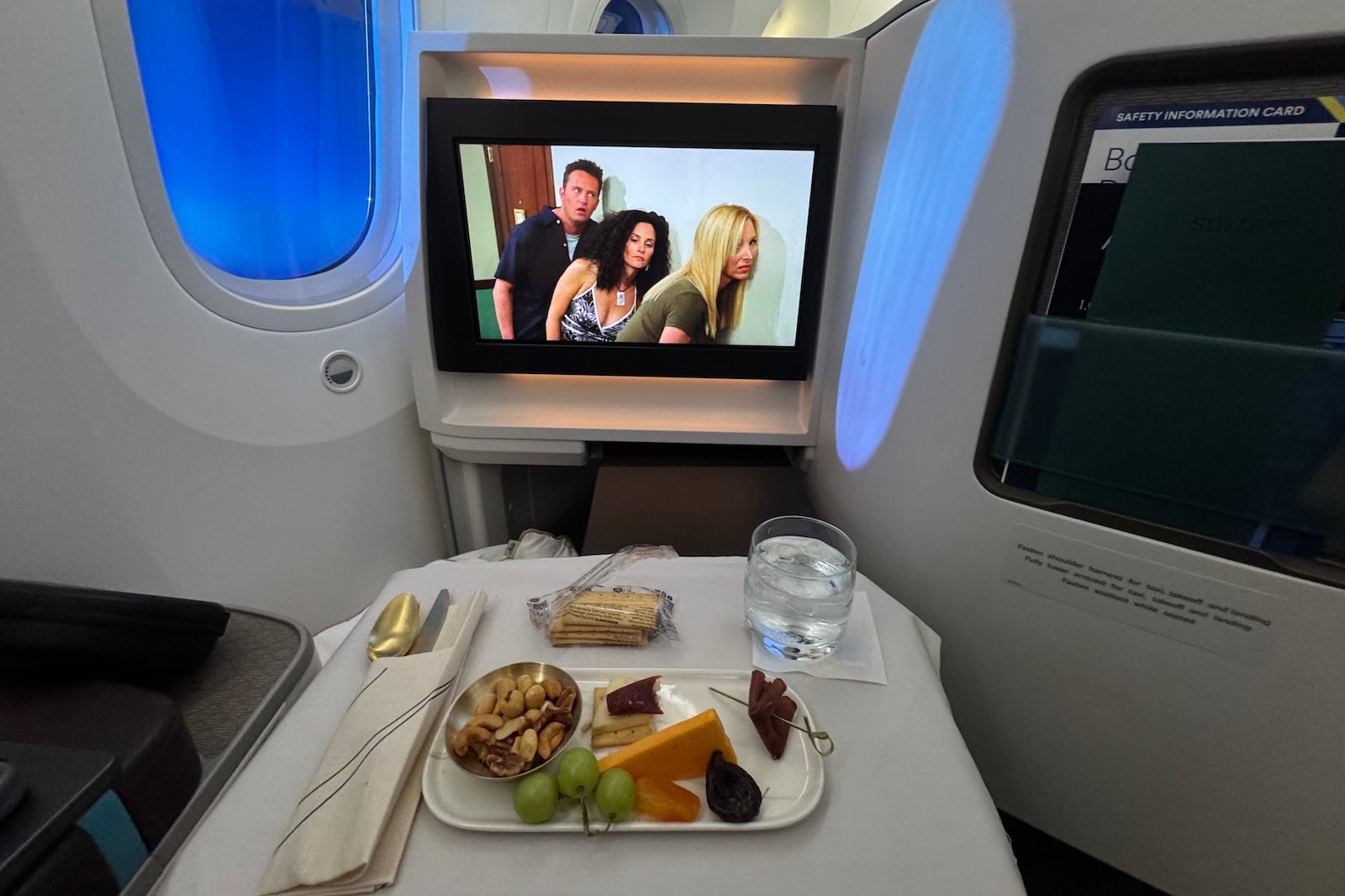 Also, the same: the 34 enclosed business-class suites, which — yes — have the sliding privacy doors that have become the standard up front, along with 18-inch screens, phone-charging pouches, in-suite mood-lighting and, of course, lie-flat beds.