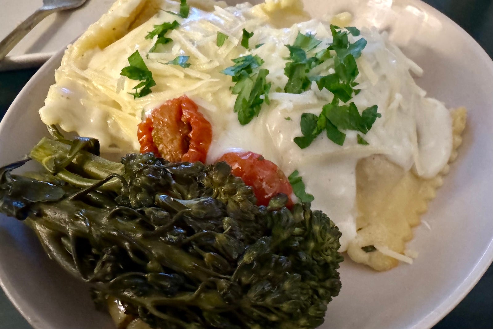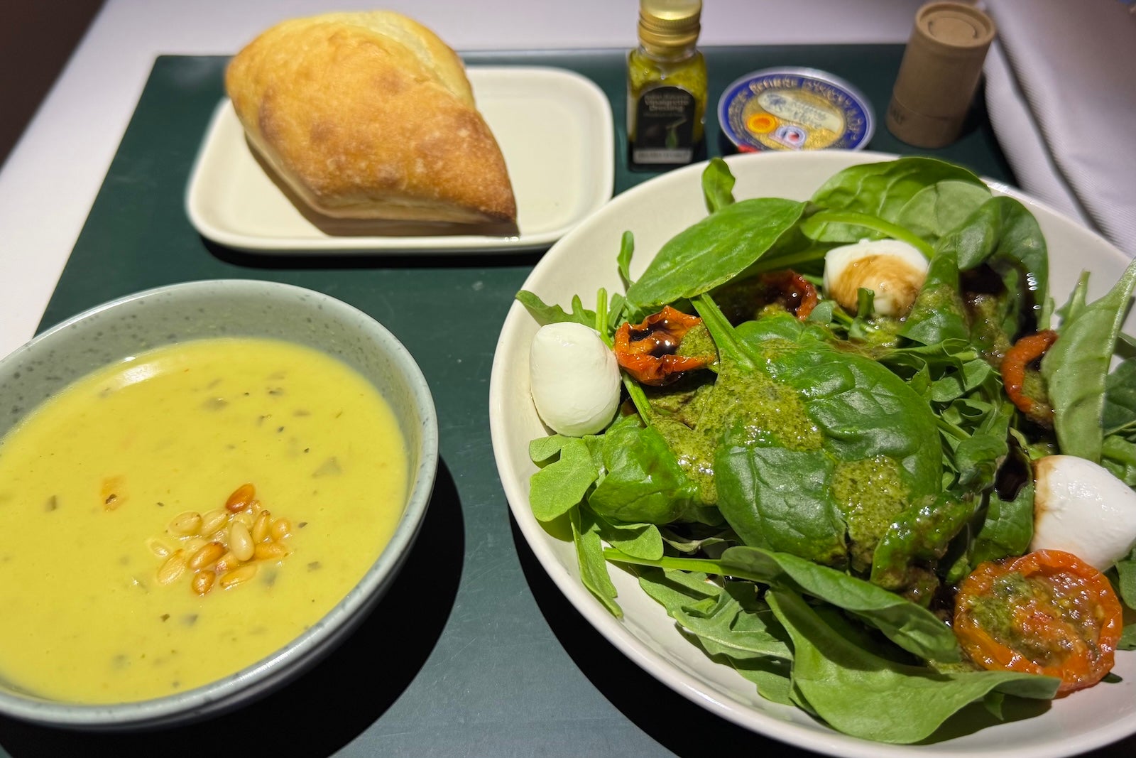 Actually, I found the entire catering experience to be impressive, which started with a pre-dinner cheese plate (a longtime staple of Alaska flights) to the asparagus soup, caprese salad and butternut squash ravioli that quite clearly got my palate ready for the destination ahead.