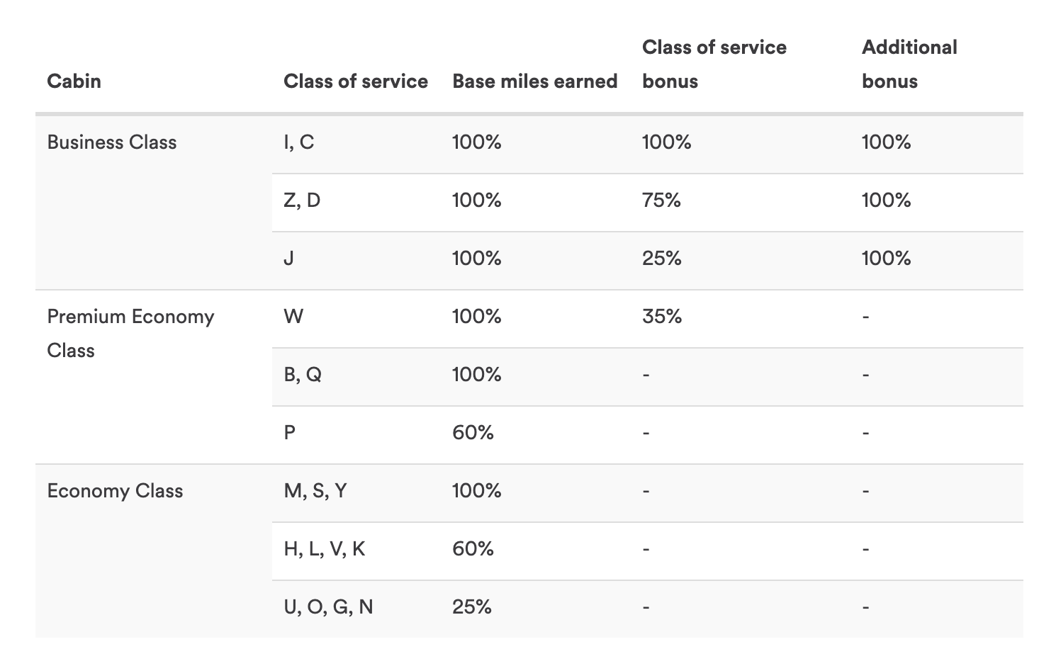 The other award and upgrade classes aren't listed in the above chart and are thus not eligible for mileage accrual.