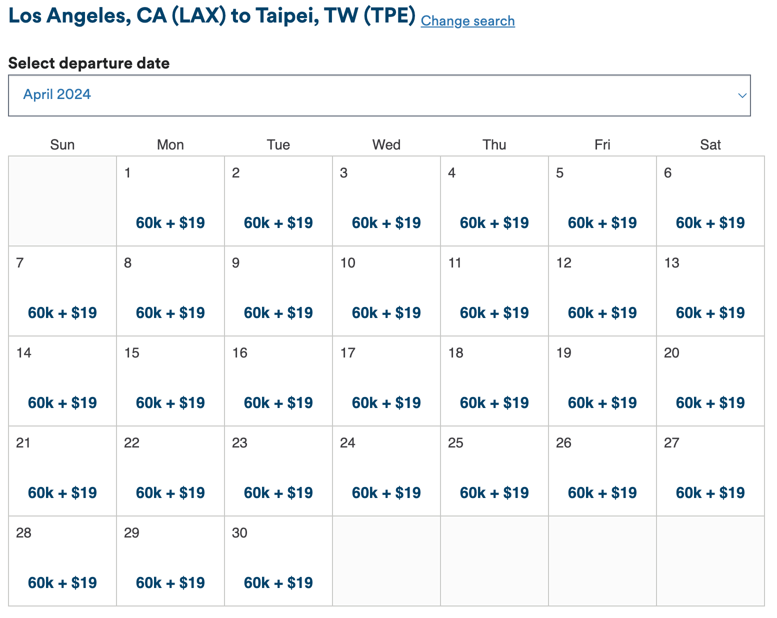 You can search and book Starlux flights directly on Alaska's website. Just note that the introductory rates are only available on the nonstops between Los Angeles and Taipei. Other routes, including connecting itineraries, have variable pricing; it ranges from 50,000 miles for an intra-Asia, business-class award up to 130,000 miles for a one-way ticket from the U.S. to cities in Asia other than Taipei.