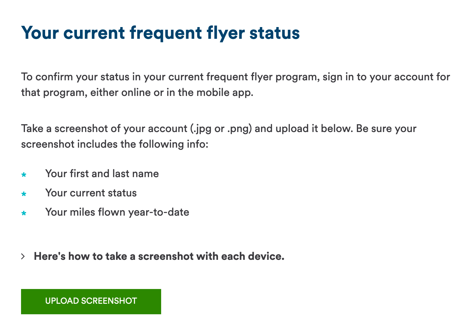 Like the match, your screenshot must include enough details for Alaska to verify your current status — including the fact that it was earned "the hard way" instead of gifted.