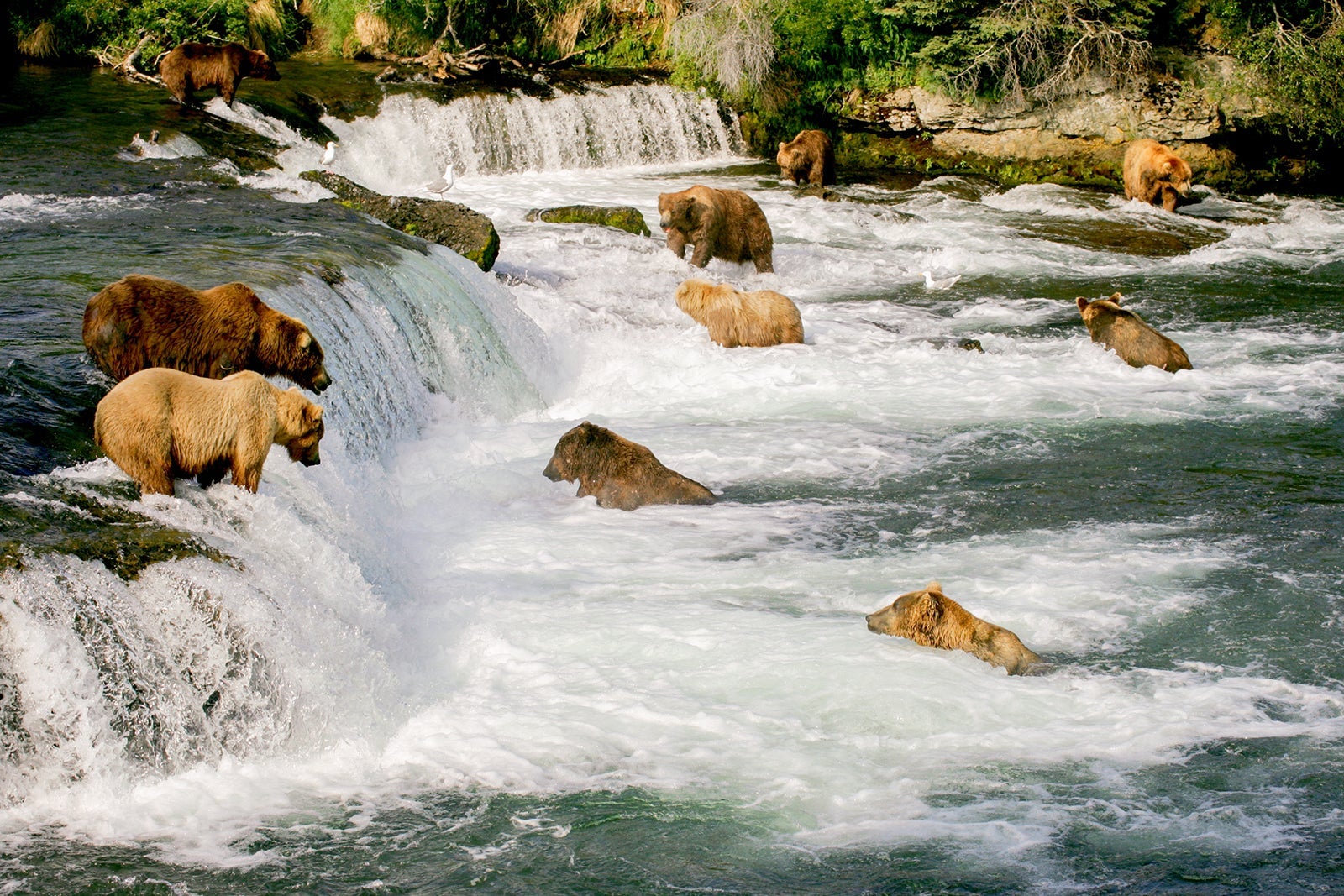 Trygg also flies sightseers to Brooks Falls and Brooks Camp from Anchorage ($1,000 per person) and King Salmon ($300 per person) to see the bears. During the flight you'll pass over the Valley of Ten Thousand Smokes and look down on gigantic volcanoes, including Novarupta, which last erupted in 1912.