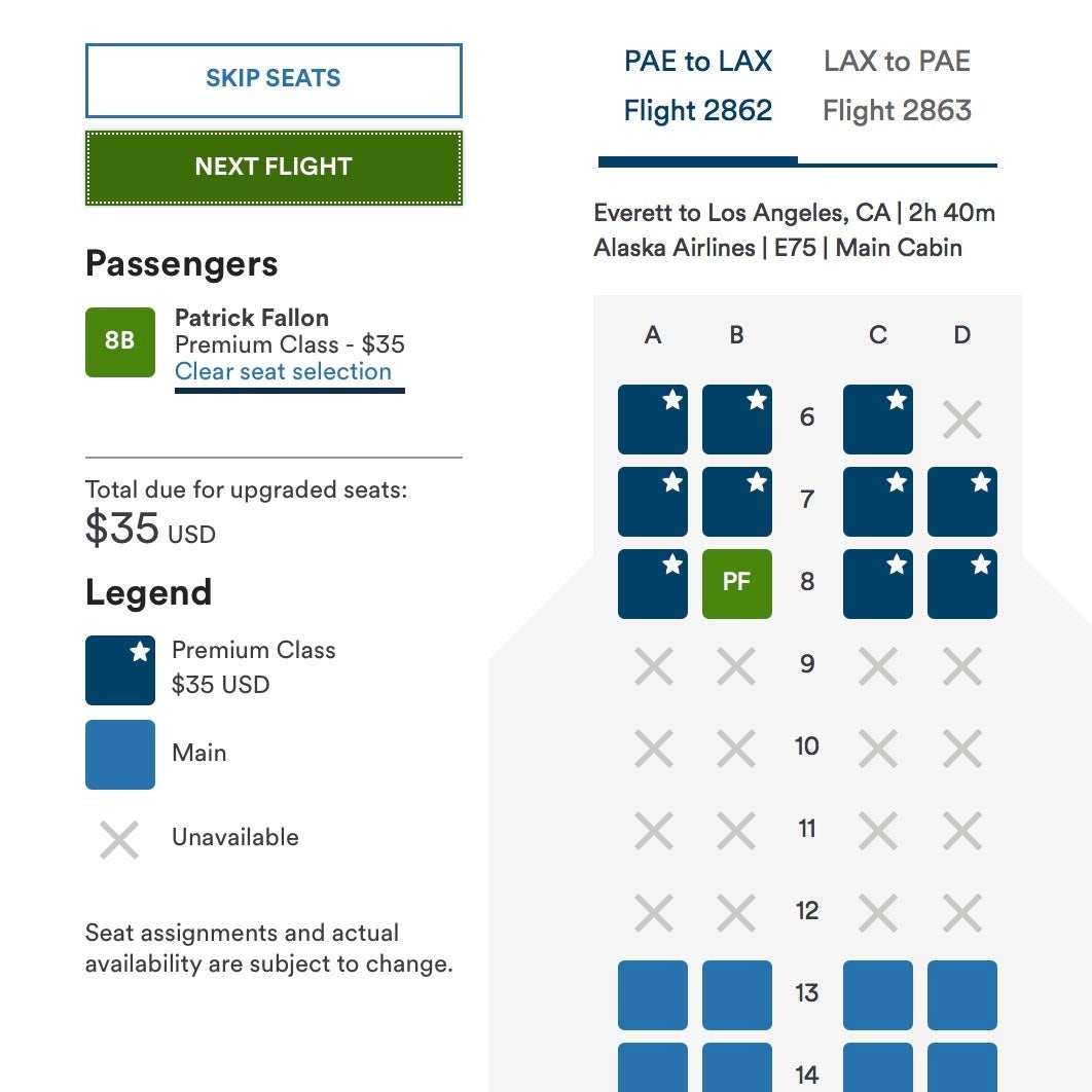 For an additional fee — just $35 on a dummy booking I tested — you can buy a seat in "premium class," which includes 4 more inches of legroom than other main cabin seats, early boarding and drinks.