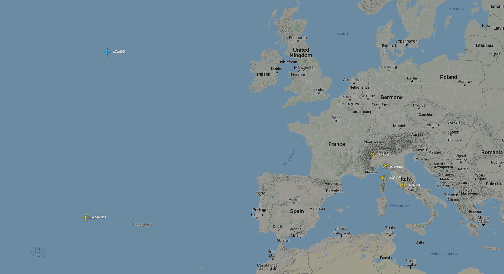 There were exactly six Alitalia aircraft airborne at 10 a.m. ET on Tuesday. Two were going from Rome to New York, one to Miami, one to Tokyo and one to London, while another was headed to an unidentified destination.