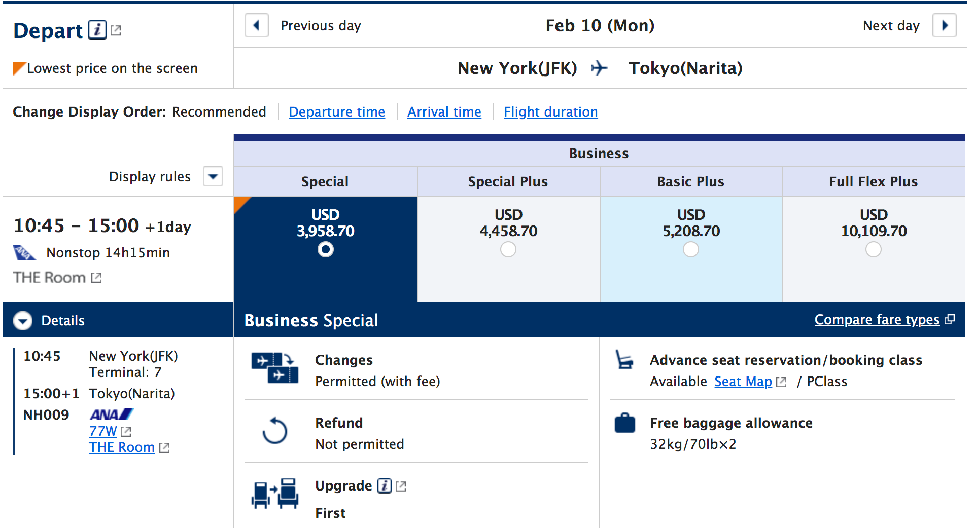Cash prices between New York and Tokyo on ANA aren't cheap, with business class around $8,000 round-trip and first class a whopping $21,700.