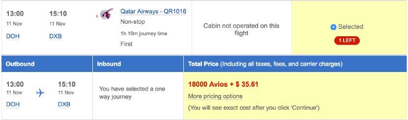 That's still a significant amount for a ~40-minute flight, but considering you'll need to pay roughly $750 for a one-way revenue ticket, that's a heck of a deal. Note that Qatar is marketing the business-class cabin as first class on this flight, so you should have access to the Al Safwa first-class lounge in Doha.
