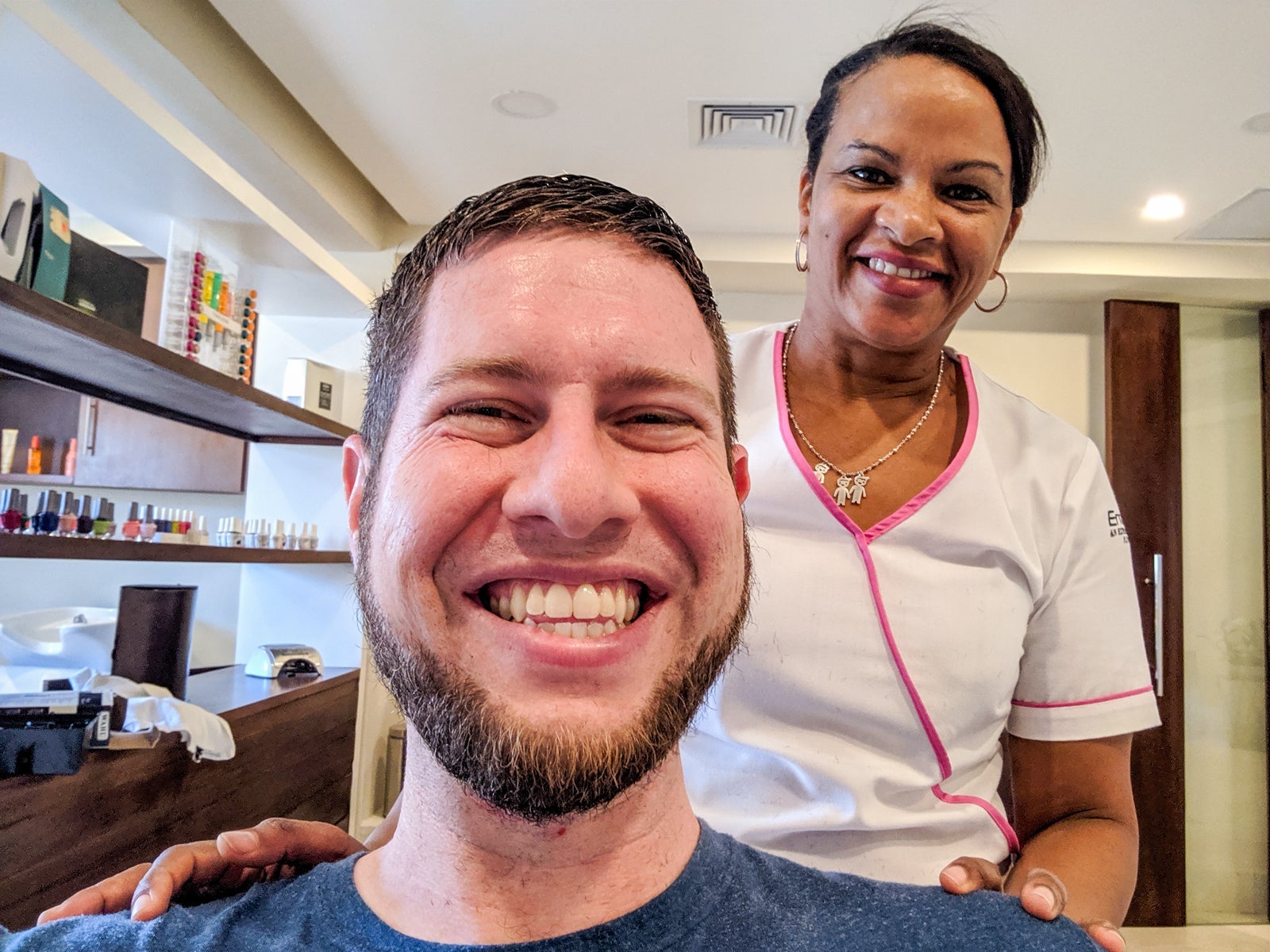 Four weeks is a long time to go without a haircut for most guys, and after a few weeks, I was looking pretty shaggy. At the resort's salon and spa, I made an appointment for a $25 men's haircut.