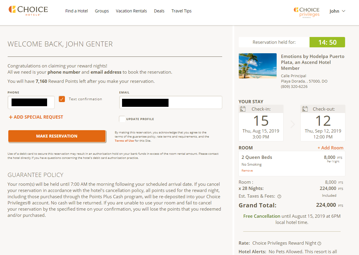 I even offered to transfer some of my credit line from my AAdvantage Aviator MasterCard or JetBlue Plus Card, but I couldn't get a reconsideration agent to approve my application. Thankfully, I had just enough points in my account from prior Choice stays and promotions to cover the remaining 30,000 points that I needed.