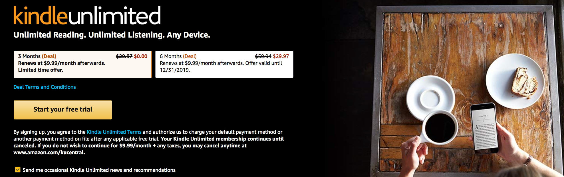 - Kindle Unlimited: Three-month free trial (typically $29.97)