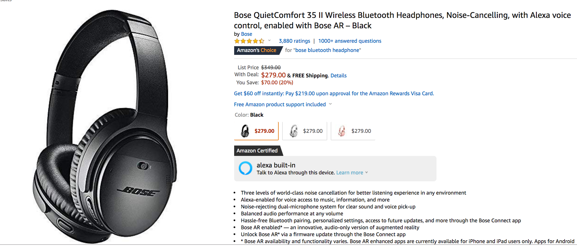 - Bose QuietComfort 35 II Wireless Bluetooth Headphones: $279 (regularly $349)