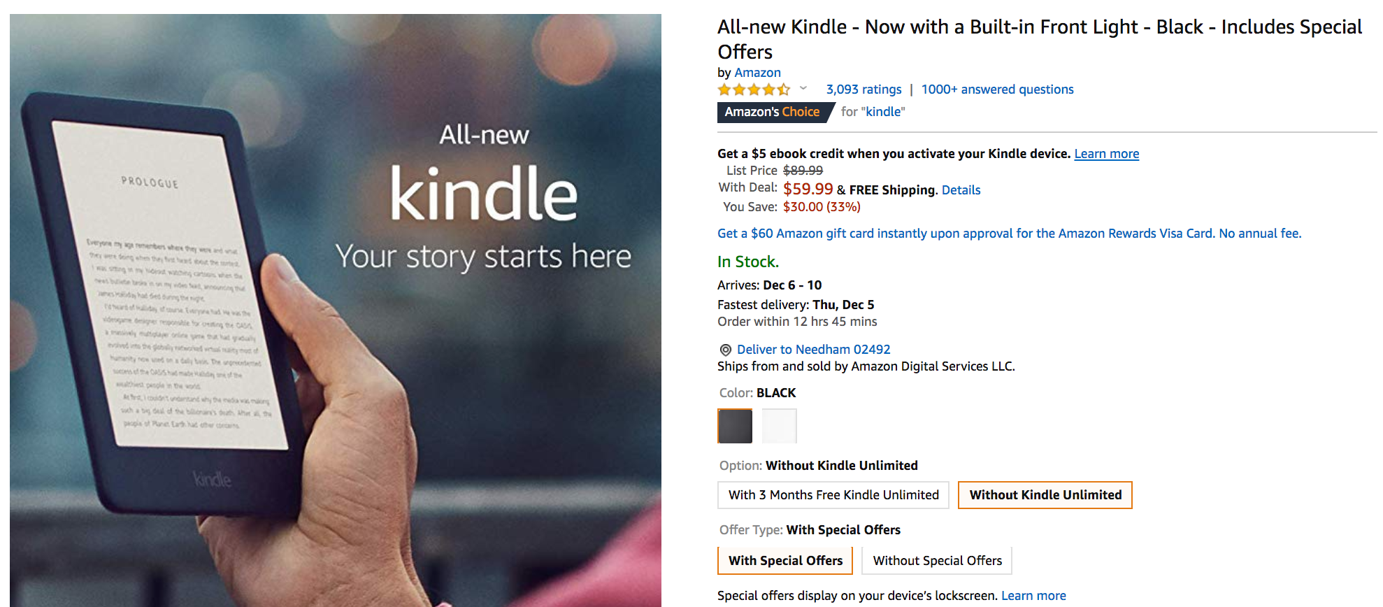 - All-New Kindle + $5 eBook Credit: $59.99 (regularly priced at $89.99) (This deal has expired.)
