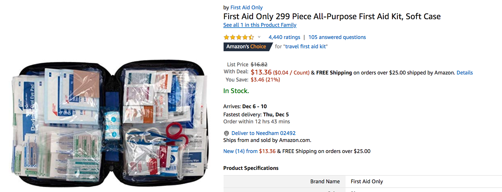- First Aid 299 Piece All-Purchase First Aid Kit: $13.36 (regularly priced $16.82) (This deal has expired.)