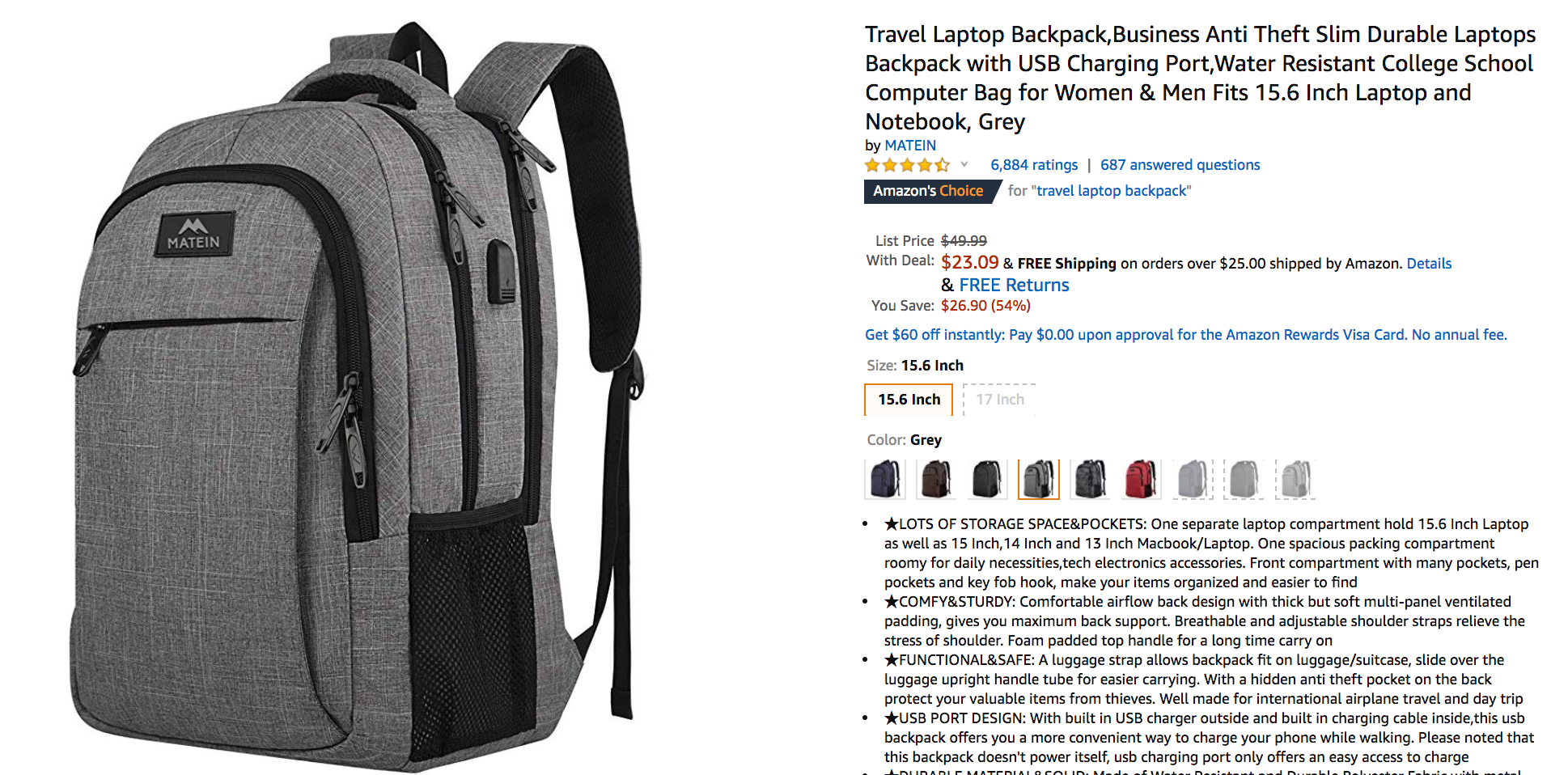 - Travel Laptop Backpack: $23.09 for this anti-theft travel laptop backpack