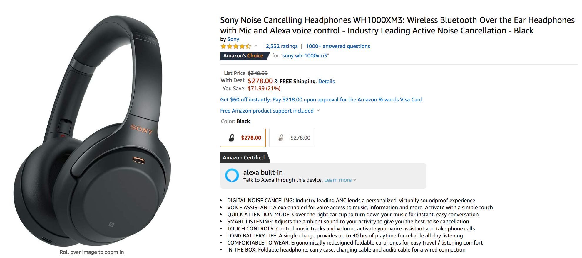 - Sony Noice Cancelling Headphones: $278.00 (regularly $349.99)