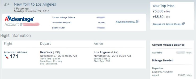 Following this change, there are currently some transcontinental economy flights pricing at 75,000 AAdvantage miles each way. Considering the cash fare for the example above is just $371 one-way, you're be getting an abysmal 0.5 cents per mile of value by booking the flight with miles.