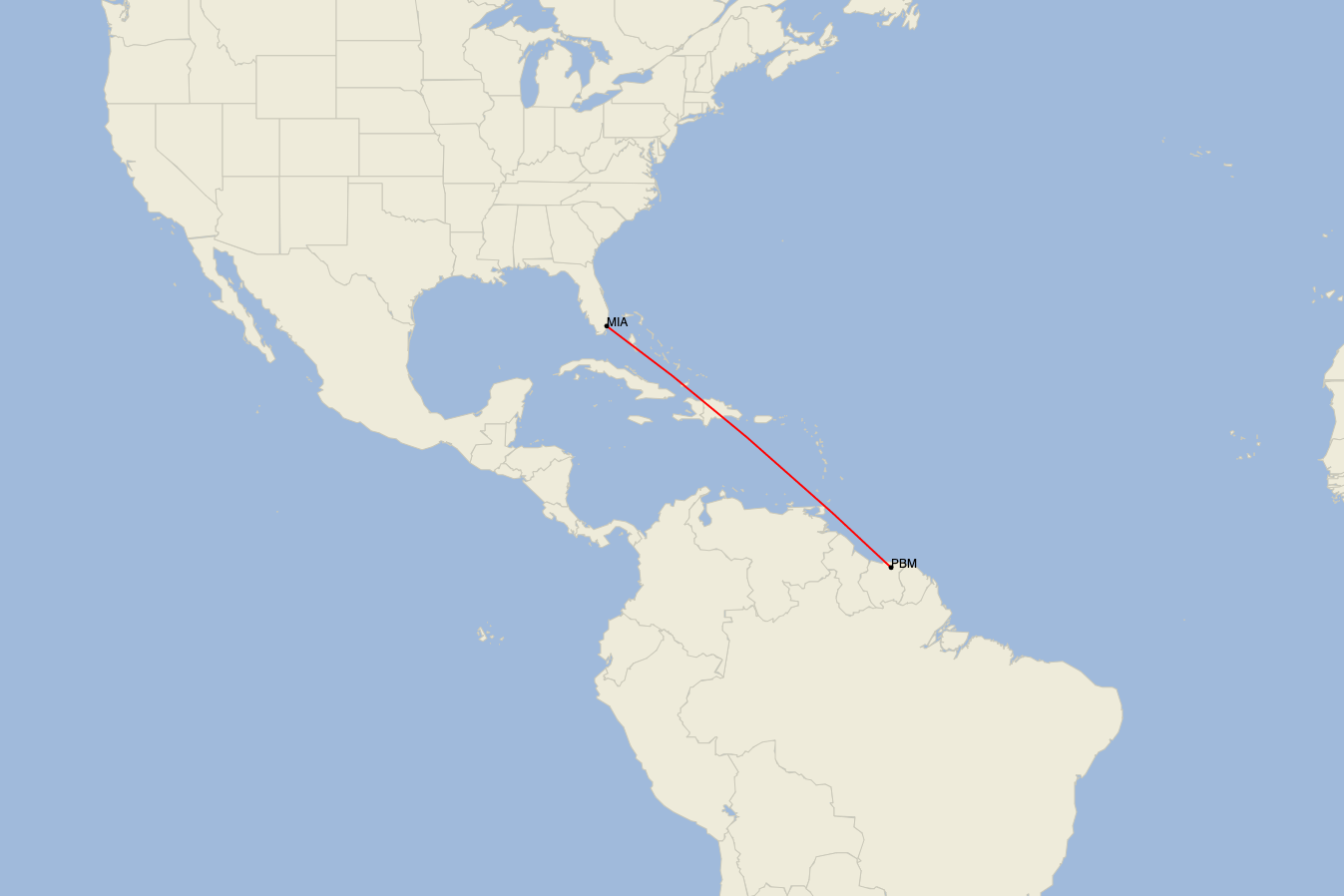 That's especially true because getting to Suriname directly from the U.S. has historically been quite difficult. The South American nation's flag carrier, Surinam Airways, was the only airline connecting the two countries with nonstop flights, but its services operated just about once a week from Miami, Cirium schedules show. Its current service from Miami operates to Suriname only via a stop in either Guyana or Aruba.