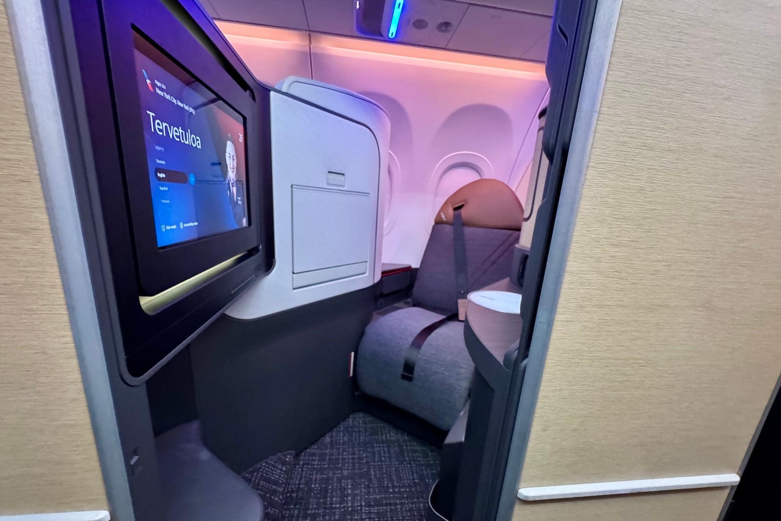 Up-front in the business-class cabin, you’ll find 20 of the carrier’s new enclosed Flagship Suites, complete with sliding privacy doors (which passengers should be able to close ... soon, once the airline gains certification for that feature).