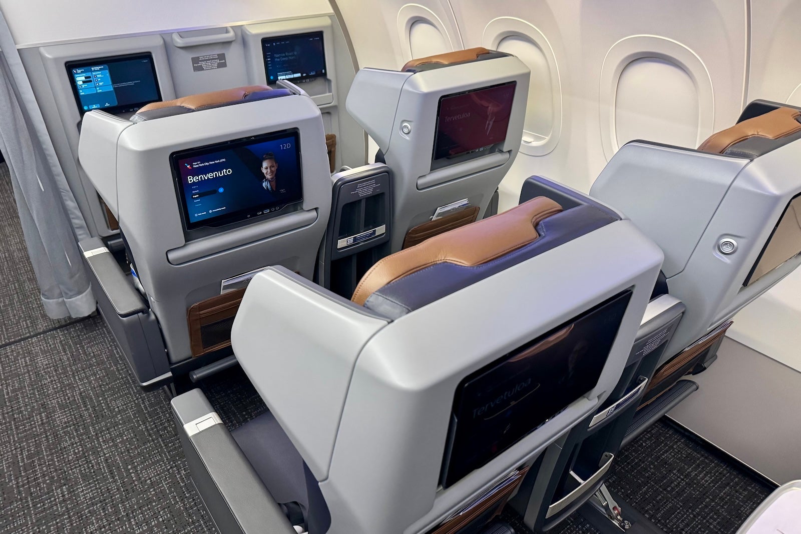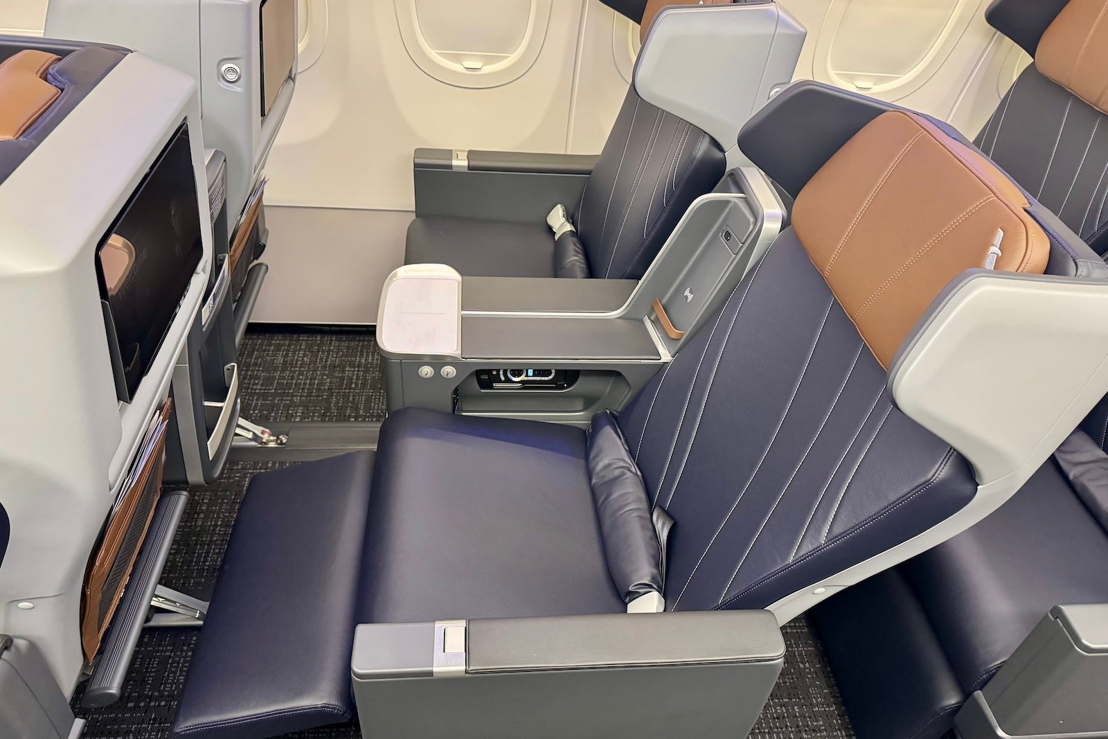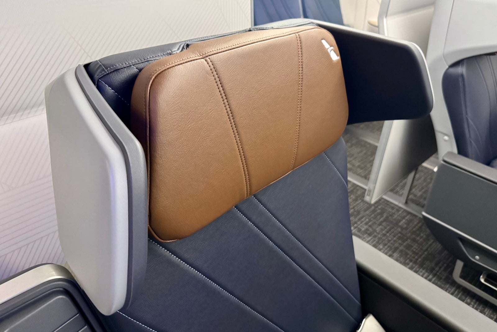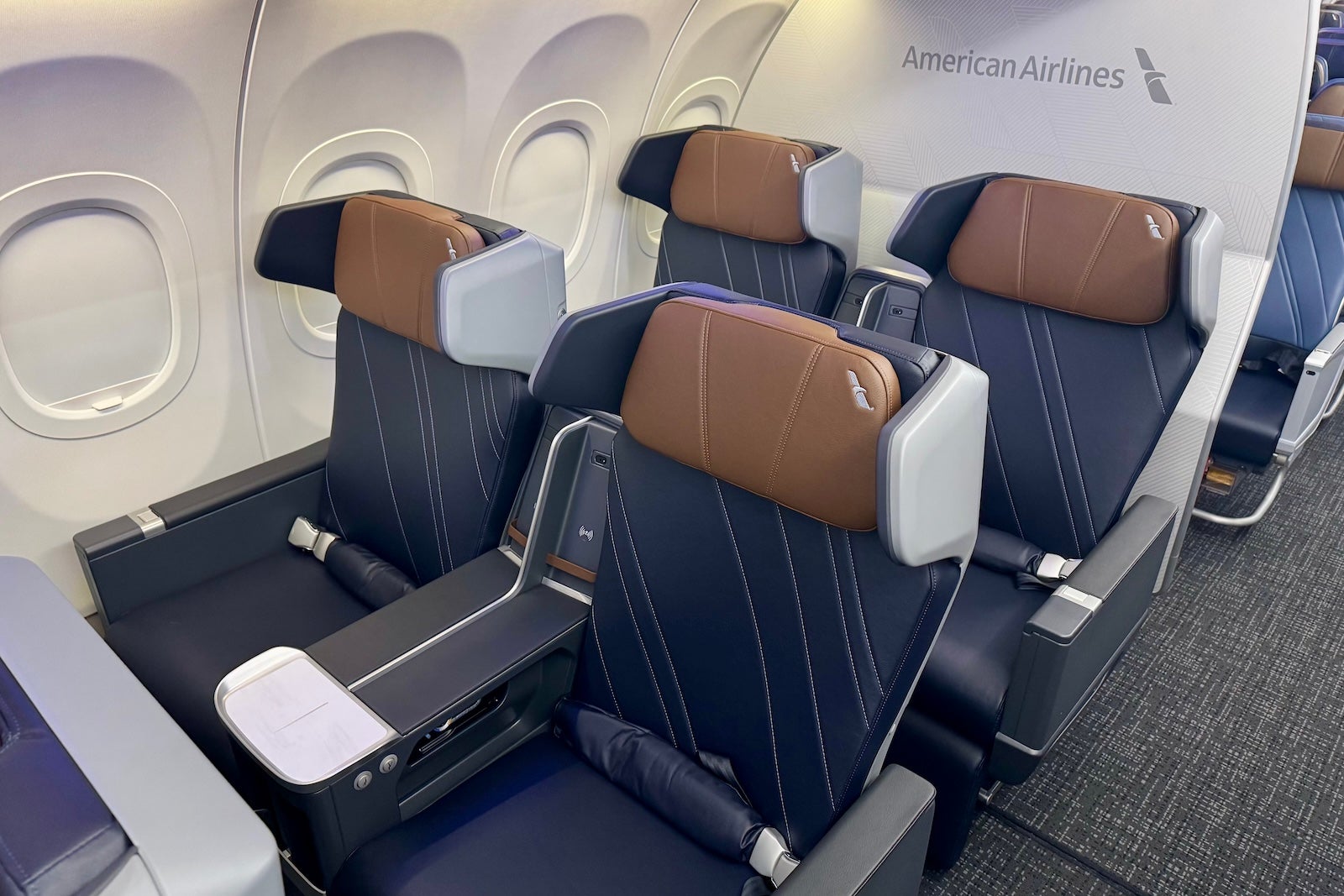 There’s also a true premium economy section. And, the aircraft sports the all-new cabin design and color scheme that American is planning to eventually make standard on its planes — including far more prominent American Airlines branding, brown leather headrests and lighter-blue seats in the back.