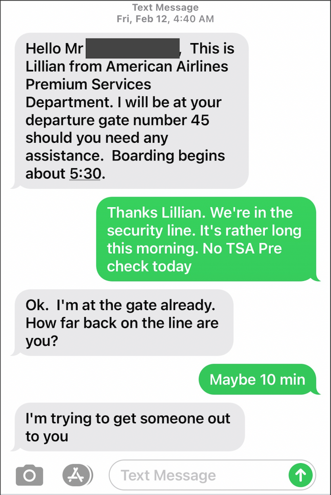 American Airlines elites now receiving personal pre-flight assistance texts from Admirals Club