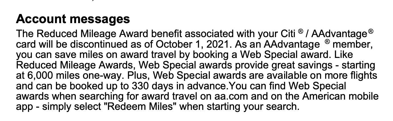 Besides the reduced mileage award benefit, American Airlines offers Web Special awards for all AAdvantage members — regardless of whether or not you have one of the carrier's cobranded credit cards. In fact, there are times when these awards actually offer a significant discount and can't be combined with the reduced mileage awards anyways.
