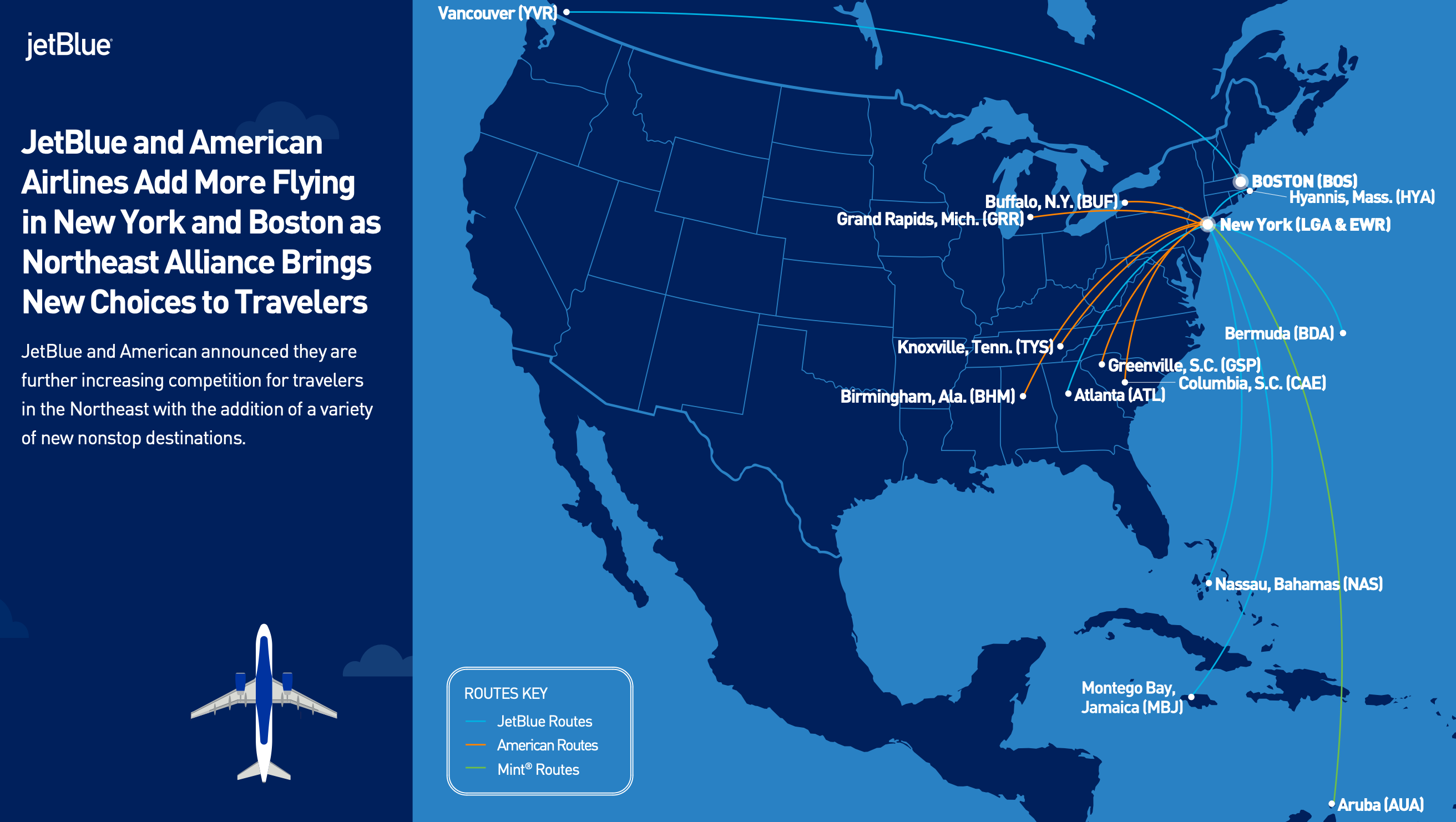 American, JetBlue add 11 new routes as part of expanded Northeast Alliance