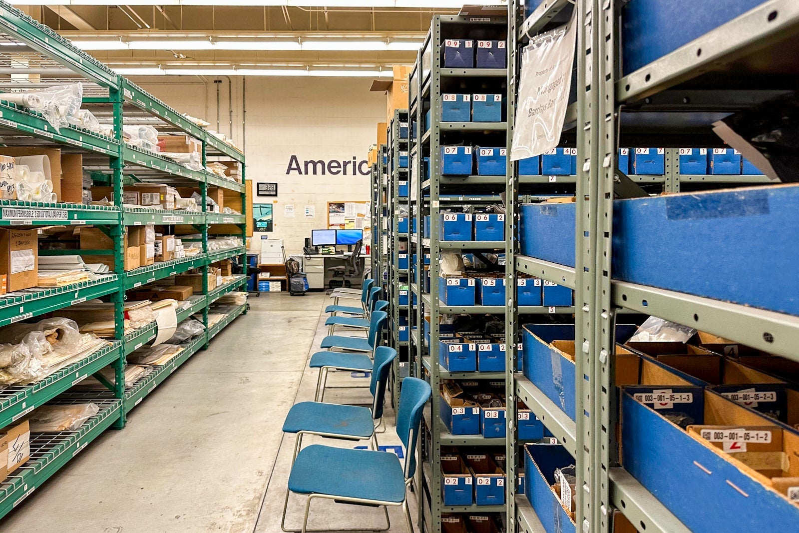 The reason this complex web of maintenance is even possible is because American's site also has a warehouse containing thousands of parts and stickers. These parts are either shipped to other hangars in Tulsa or to airports and third-party services that need to do maintenance on an aircraft.
