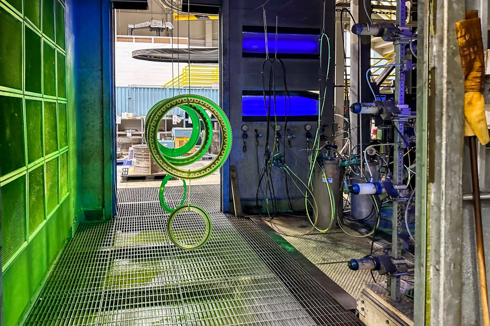 Staff members also inspect some parts of the engine by soaking them in a fluorescent lime-green liquid to magnify which parts need to be reinforced.
