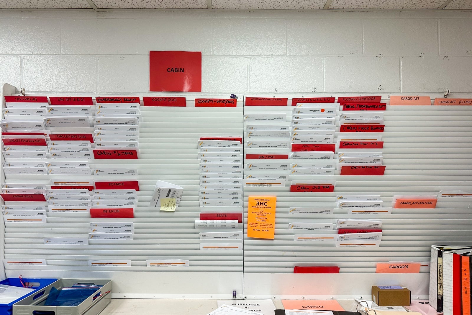 So, document holders containing slips of paper that detail every task from the FAA line two walls of an office within a 737 hangar at the Tulsa base.