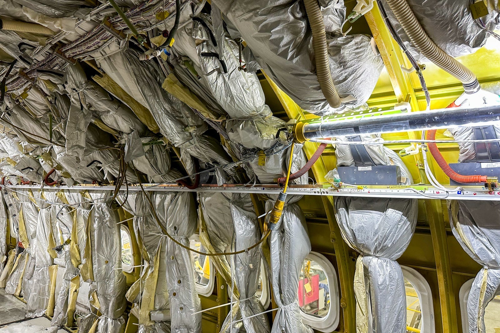 Inside, technicians were already hard at work. One was by the plane's back door, critically documenting what parts had been affected by corrosion.