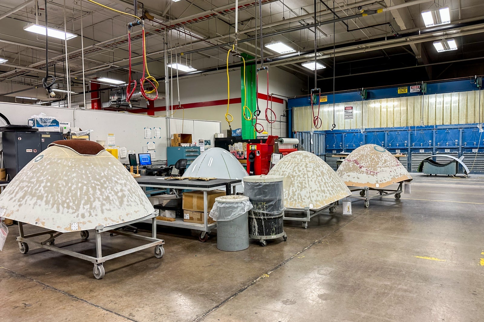 Whenever parts like the wings and the radome — located at the tip of the plane — need a lift, they are sent to a composite center. There, they get reinforced with materials such as carbon fiber and a honeycomb web made from materials like aluminum.