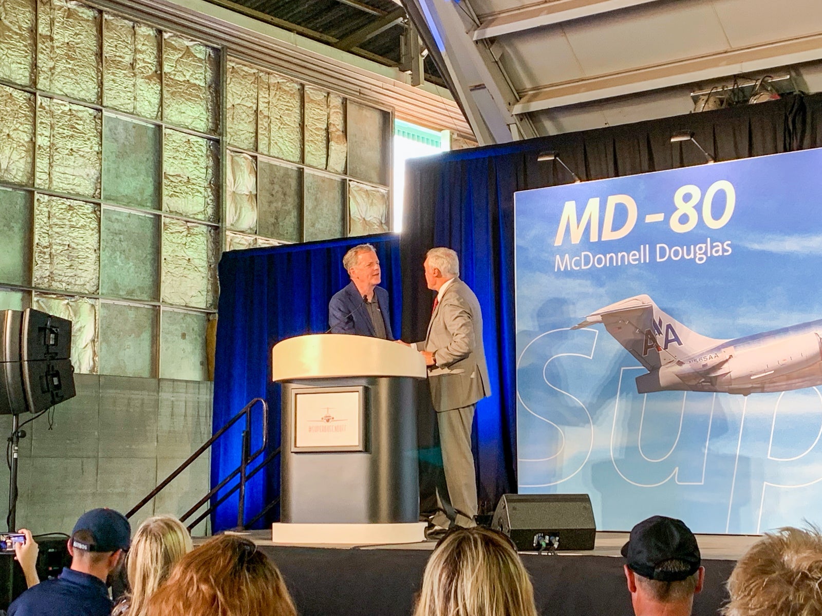 He talked about the plane's impact on the American Airlines route network and how, through the acquisition of TWA, it placed American on the trajectory to becoming one of the world's largest airlines. When finishing his speech, Parker joked that it was time for the MD-80 to finally be retired in order to make way for more customer-friendly airplanes.