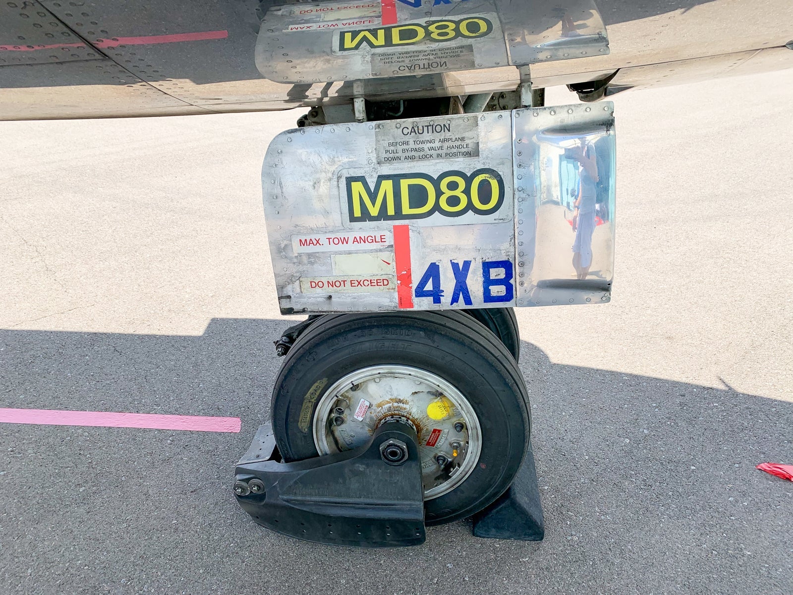 I even learned something new on the last day of service for American's MD-80s. When gawking at each of the MD-80s, I noticed there was a black bar protruding out of the landing gear. I asked Ryan what purpose these bars serve, and he responded that these are actually spray deflectors that make sure that water doesn't spray into the engines when rolling down a wet runway.