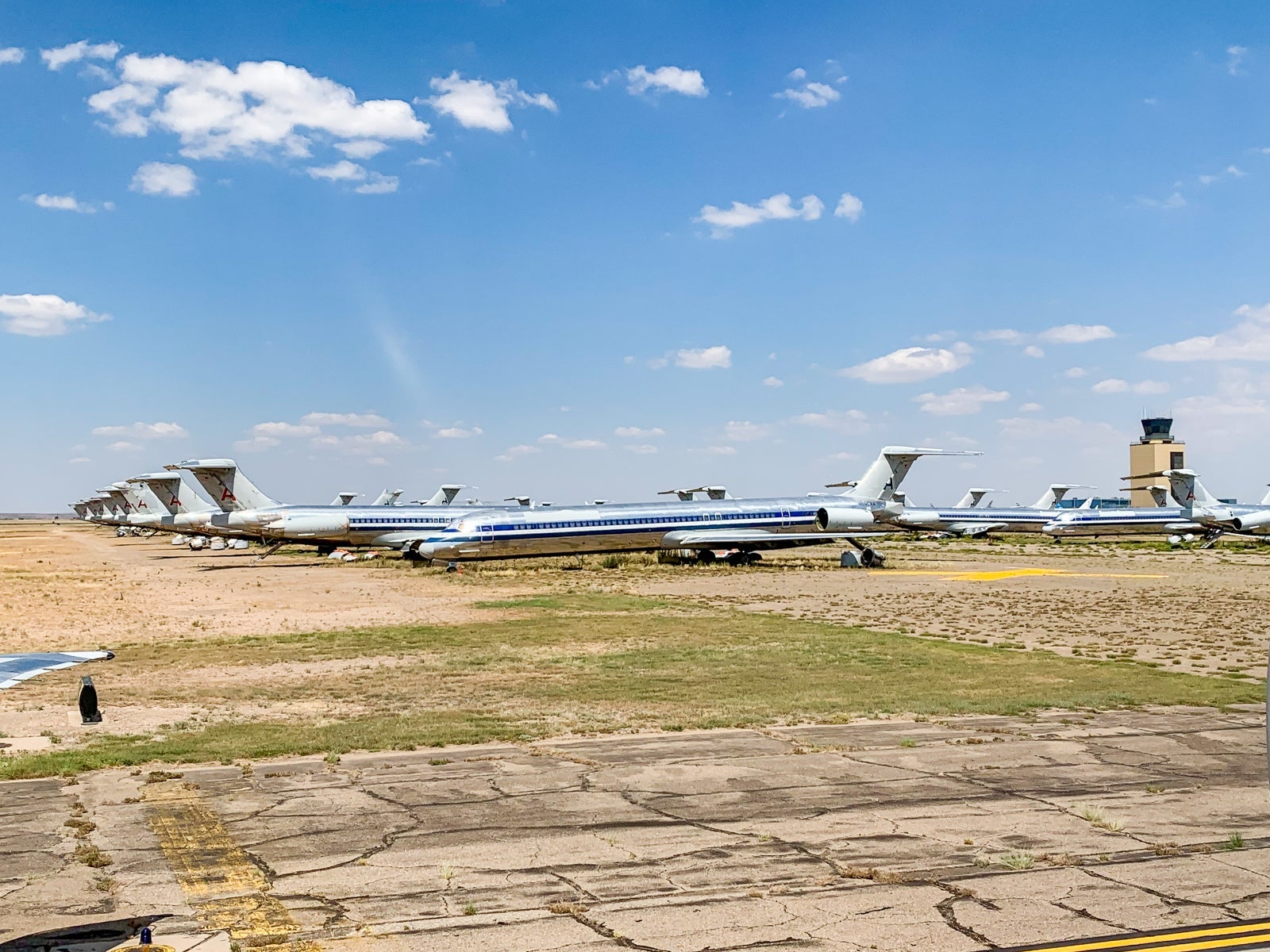Before long we were on our bumpy descent to the 96-degree desert heat of Roswell. After we landed, we had a long taxi to the parking area, which made for great views of other retired aircraft.