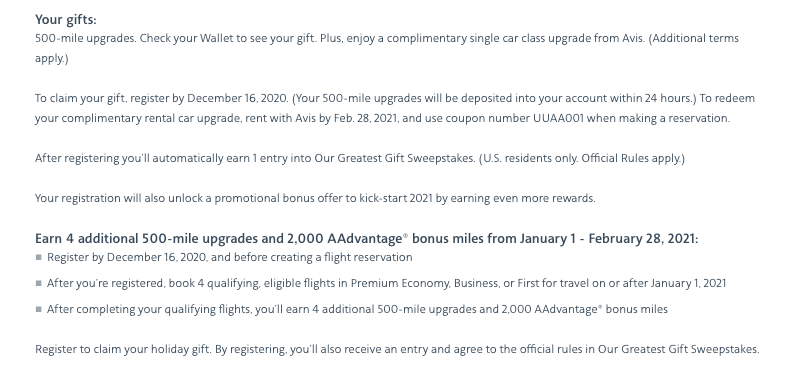 - A tiny enticement to fly in January and February at what could be peak pandemic times? Why would I fly to get more useless 500-mile upgrades and just 2,000 miles I value around $30?