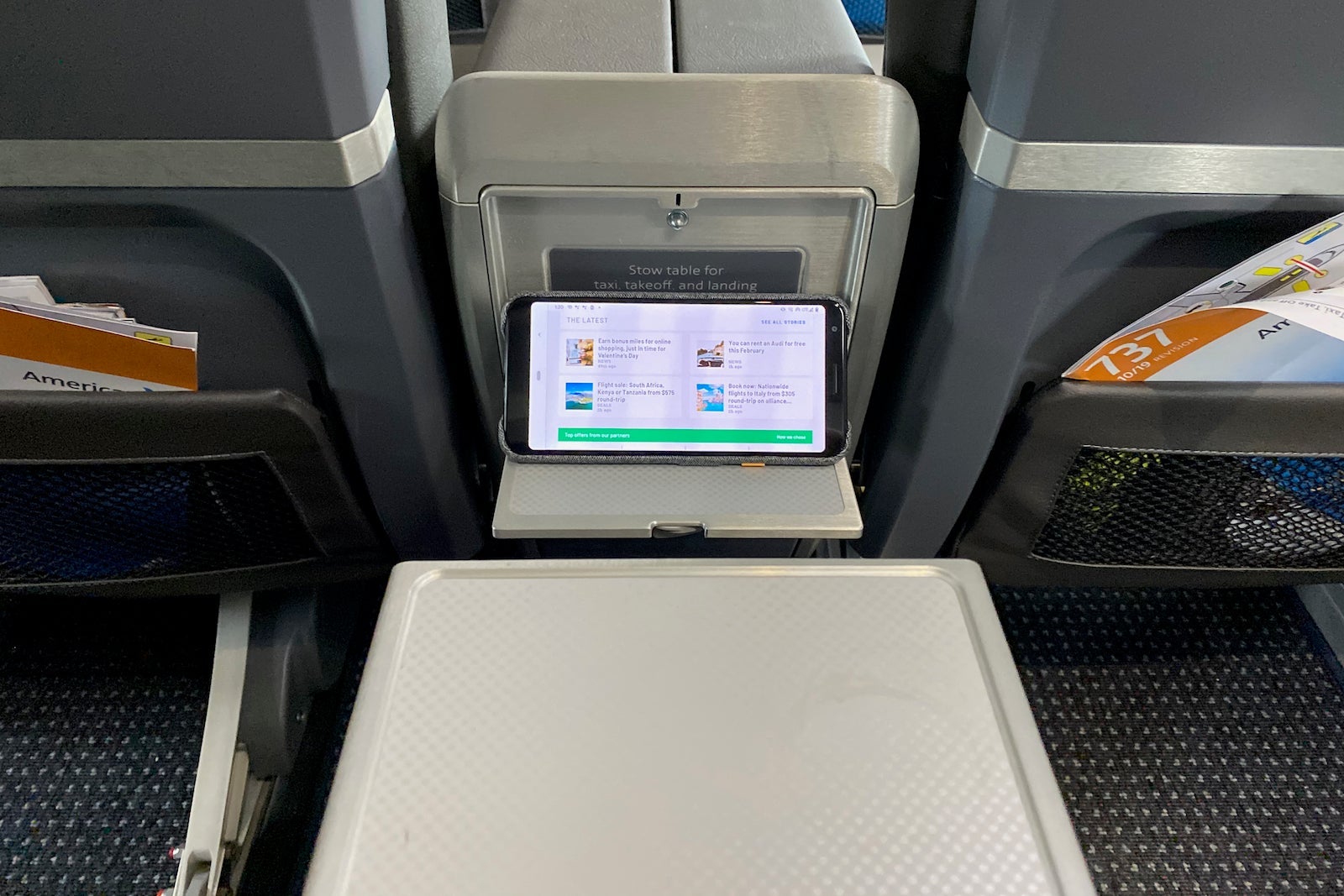 For added convenience, American installed tablet holders in the literature pocket on its latest Airbus A321s. With Oasis 2.0, the airline is bringing that improvement to the Boeing 737 fleet.