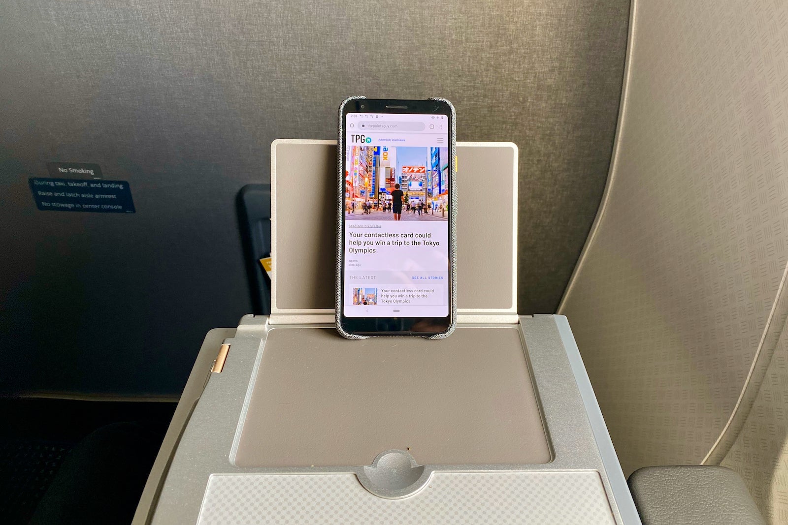 Previously, the only place to prop a device was on the tray table, but that wasn't ideal when eating.