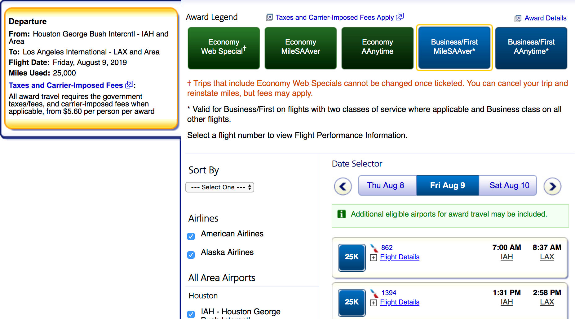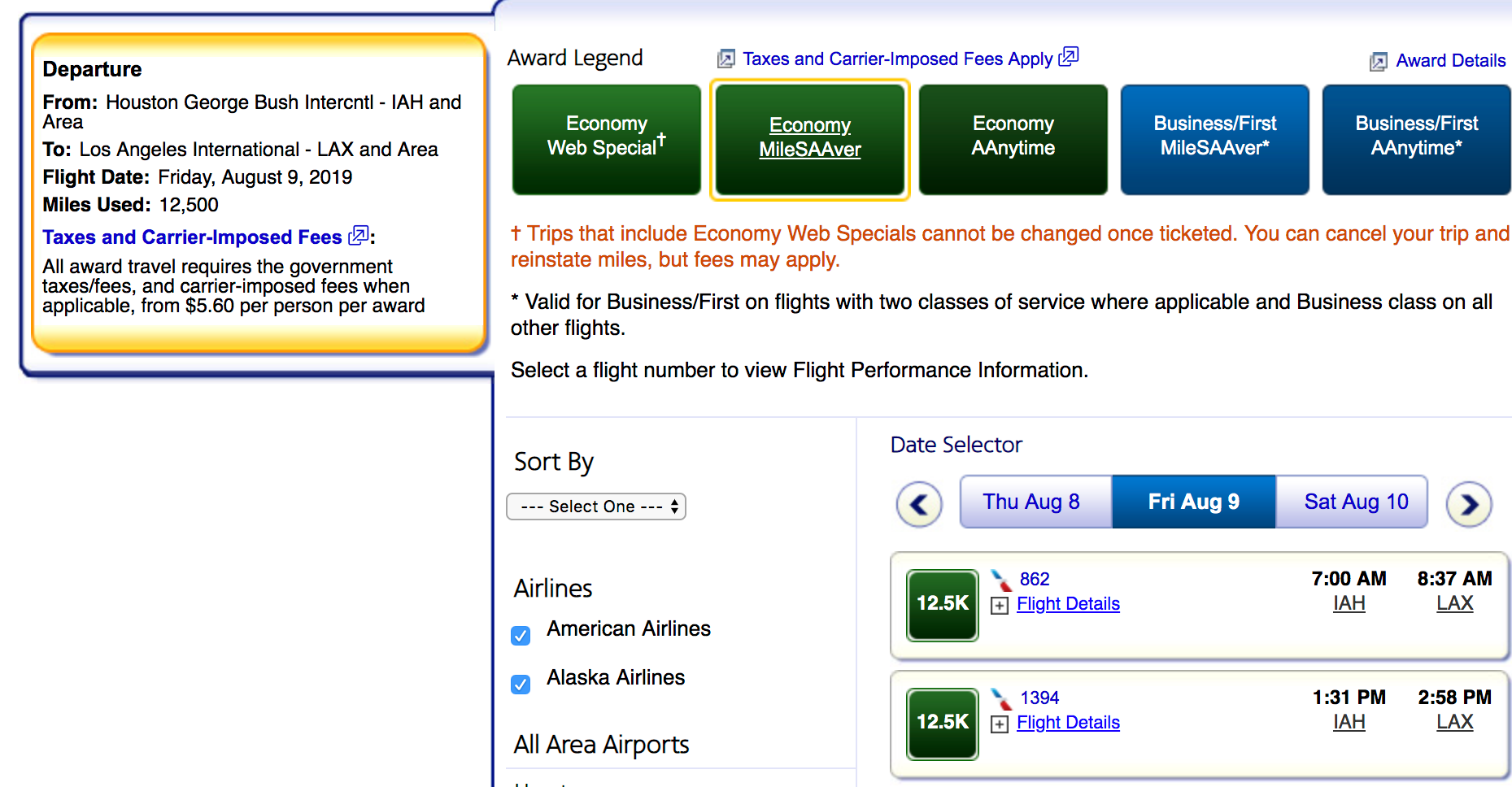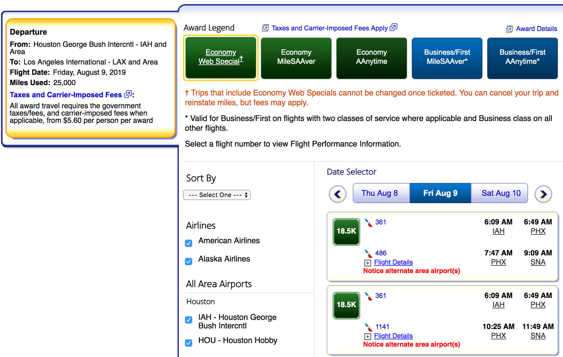 When award charts are deemphasized, logical pricing assumptions leave with them. It is logical to assume that a more restrictive Web Special economy award will be the least expensive award flight when it is available. But it's not always. As an example, take Aug. 9 on Houston (IAH) to the Los Angeles area (LAX) on a ho-hum routine domestic award.