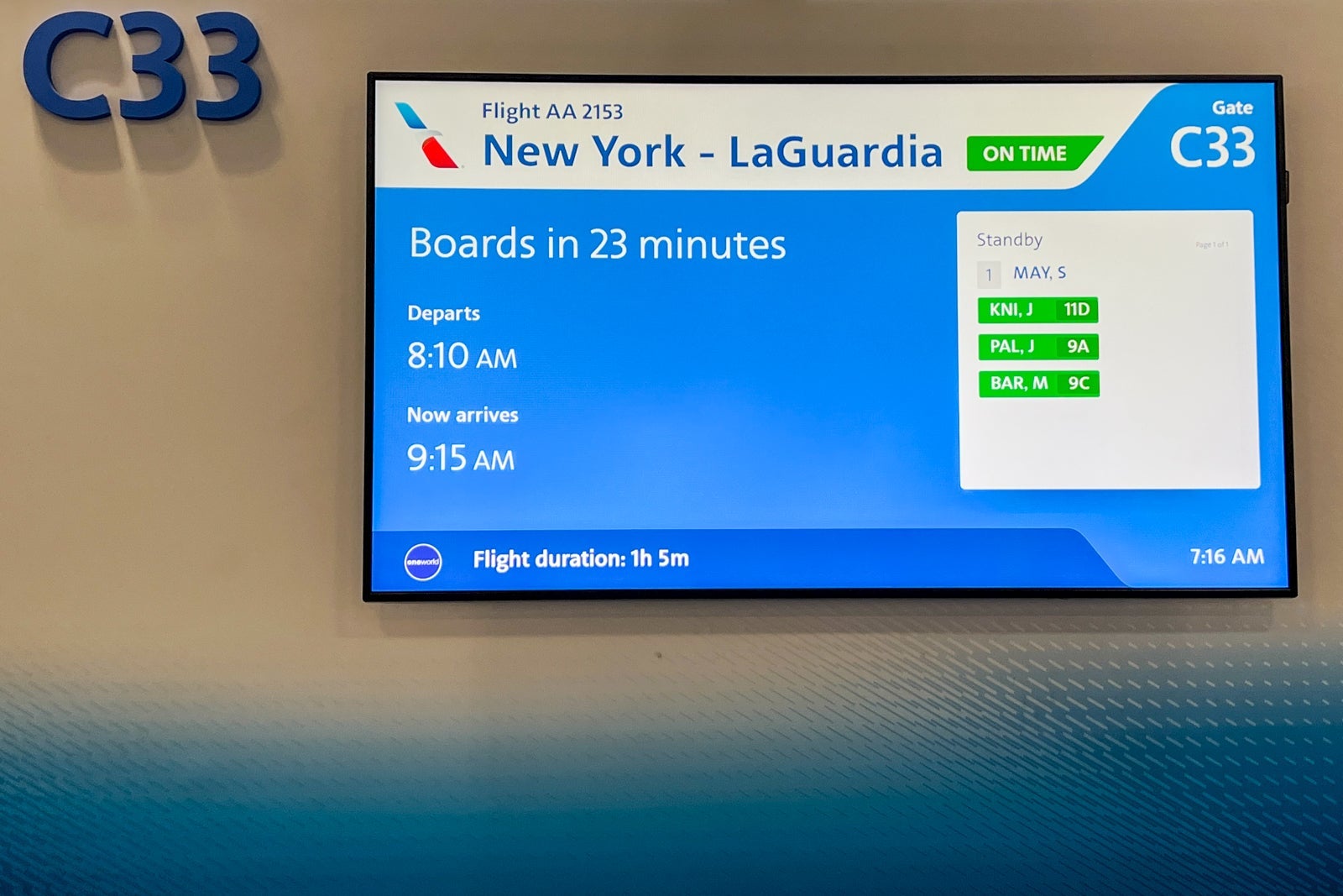 I used American's mobile app plus my elite status to go standby on the 8:10 a.m. flight home. (I was No. 1 of five people on the list; there were 100 empty seats, according to the app.) In fact, the Airbus A319 that I flew down from New York (registration N763US for all you fellow aviation geeks) ended up being my shuttle home to New York.