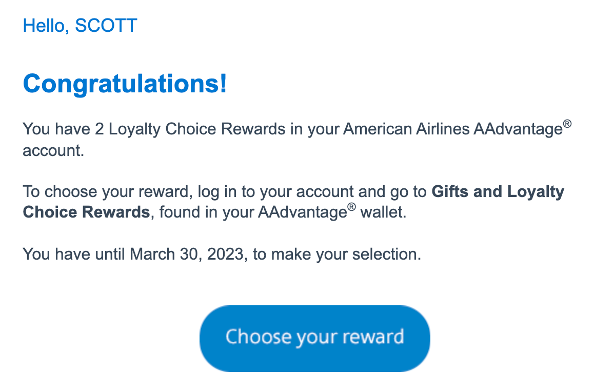 On top of that my new Loyalty Choice Rewards arrived in my inbox just a few hours later.